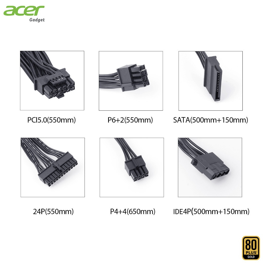 Acer AC1000 1000W 80+ Gold DC-DC Full Mod PCIe5.0 Power Supply