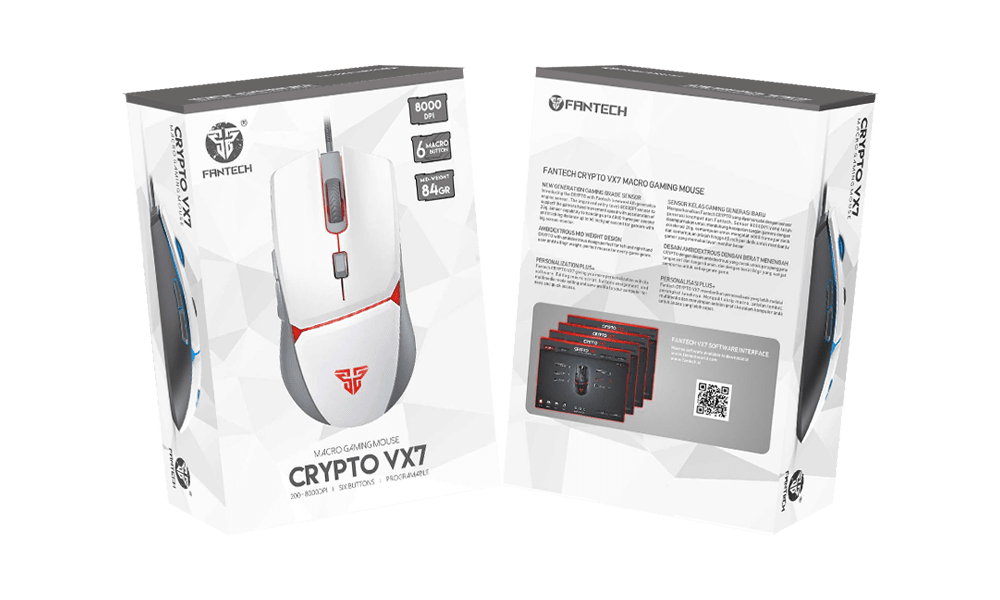Fantech Crypto VX7 Space Edition RGB Wired Optical Gaming Mouse, 8000 dpi, 6 Macro Buttons, 84g, 4 Colors Led - White