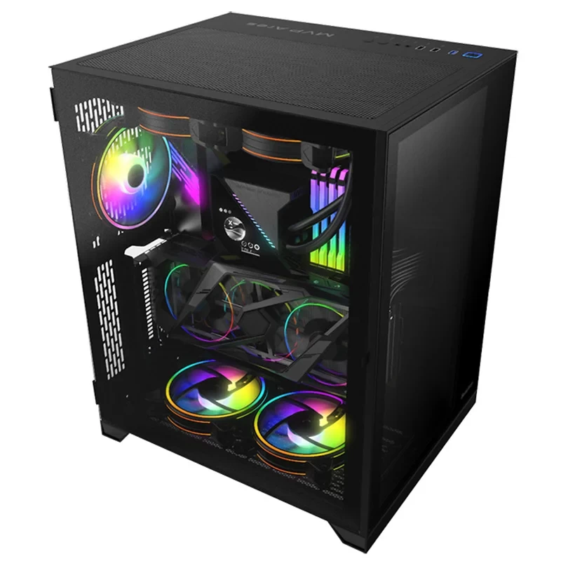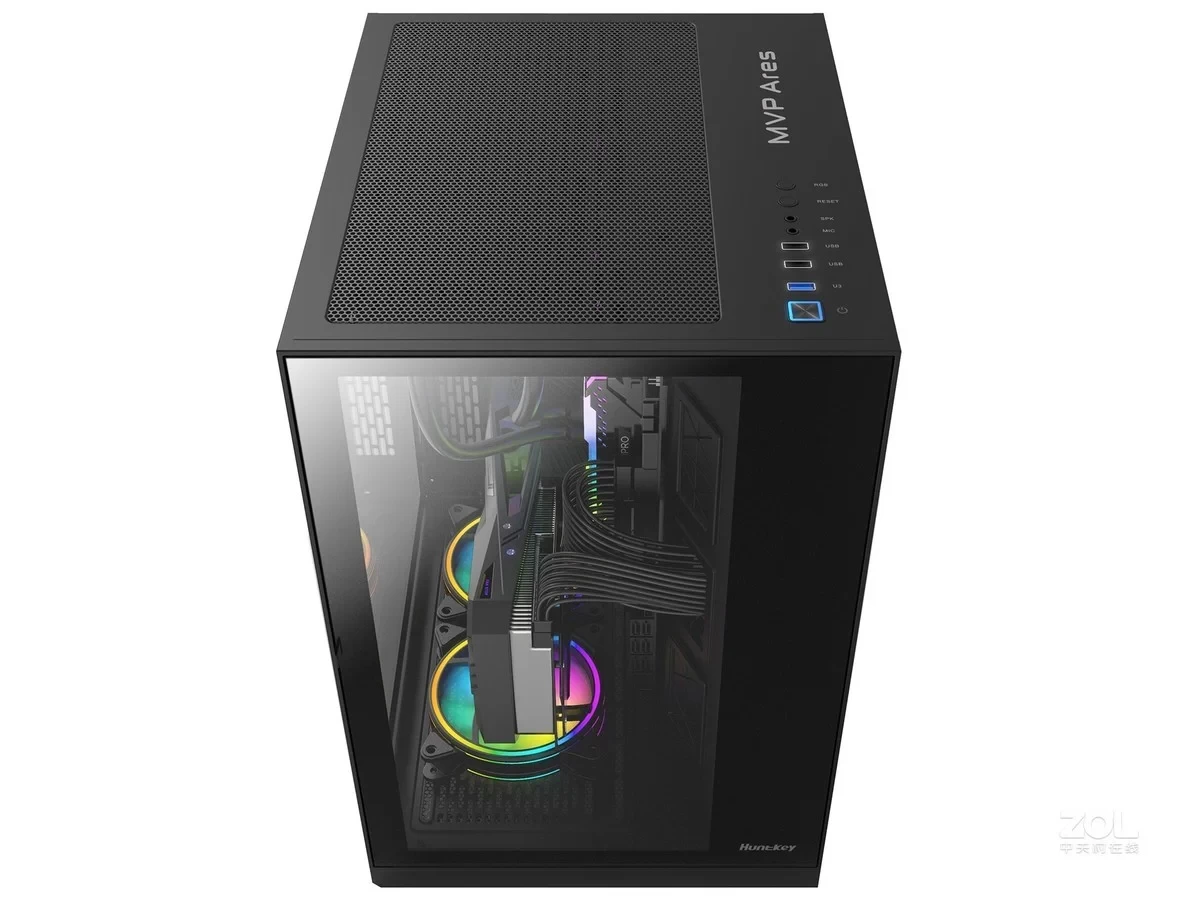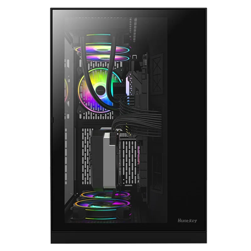 Huntkey MVP Ares Gaming Case Supports ATX Motherboards, 2x USB 2.0 1x USB 3.0 2x Mircophone / headphone Port Front I/O, Tempered Glass Side Panel (No Fans Included)