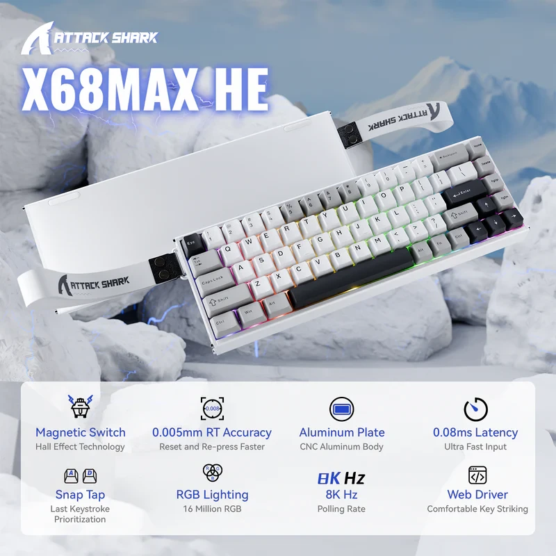 ATTACK SHARK X68MAX HE Rapid Trigger Aluminum Keyboard Magnetic Switch