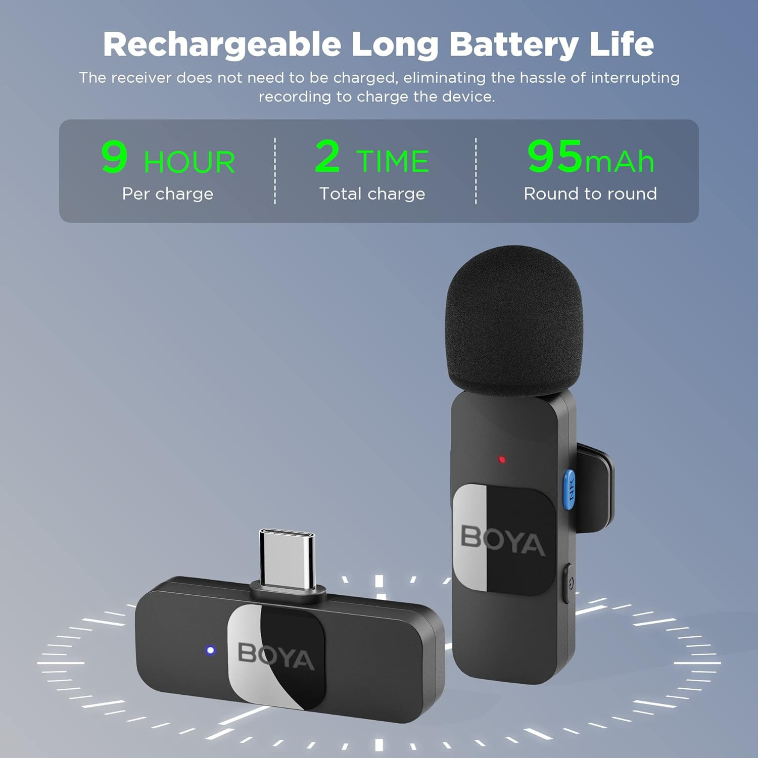 Boya BY-V10 Ultracompact 2.4Ghz Omnidirectional Wireless Lavalier Microphone with USB-C Port, Up to 50m Transmission, 9 Hours Battery - Black
