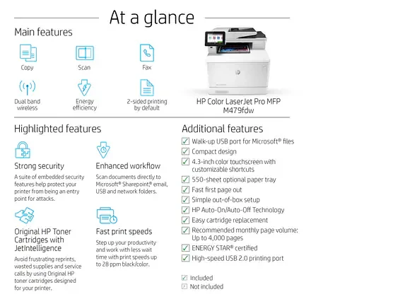HP Color LaserJet Pro MFP479FDW All-in-One Colored Printer with Automatic Document Feeder, Duplex Printing,- Wi-Fi - White