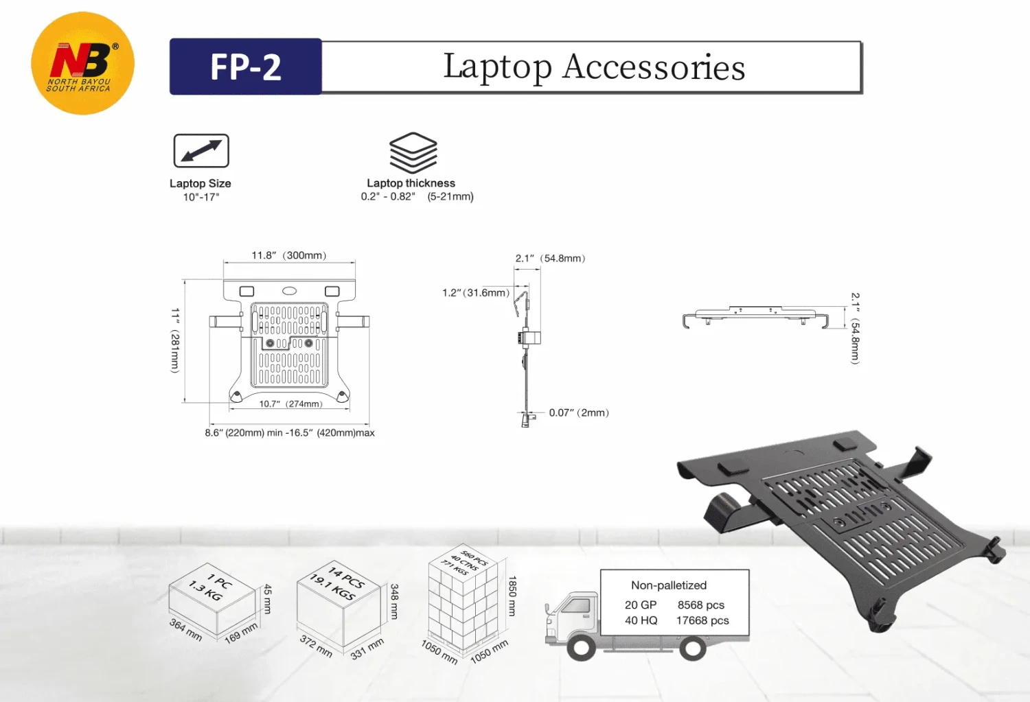 Compatible with laptops/ notebooks sized 10″ – 17″ Laptop mount Product weight ( FP2): 1.15kg The laptop stand mount optimises space Elevates your device The arm is not included