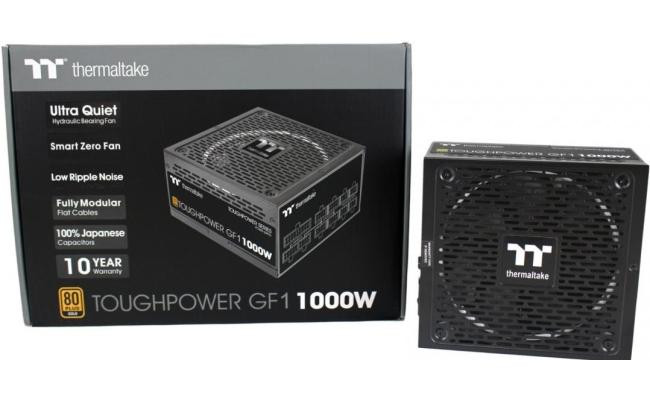Thermaltake ToughPower GF1 1000w Full Modular 80 Plus Gold PSU SLI/Cross Fire Single Rail 140 mm Fan Full Modular 80 PLUS GOLD Certified 100 - 240 V 50/60 Hz +3.3V@22A, +5V@22A, +12V@54.2A, -12V@0.3A,