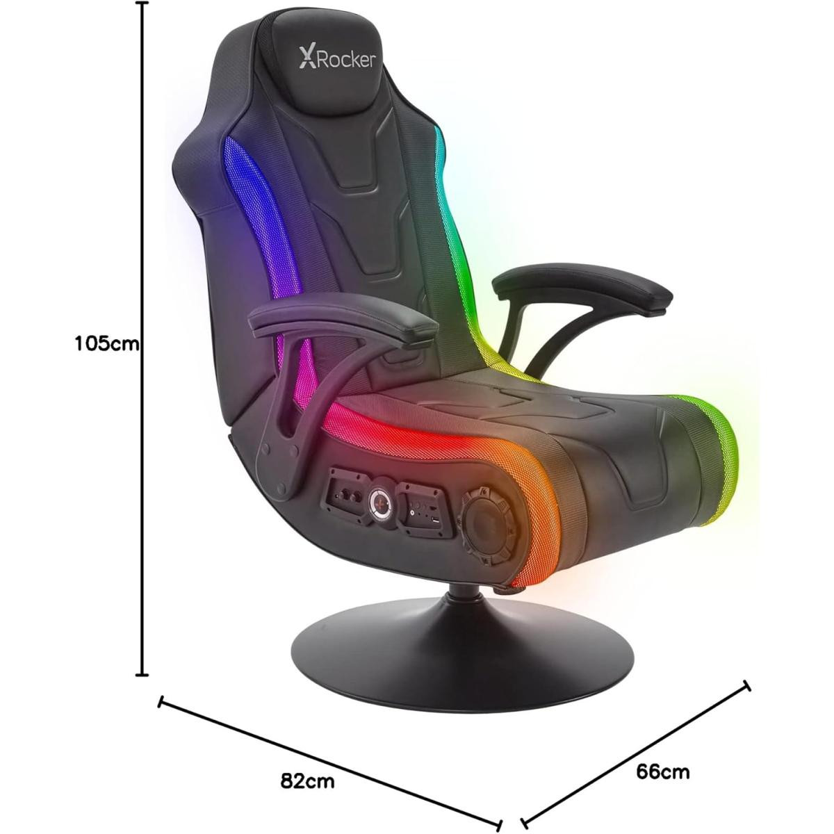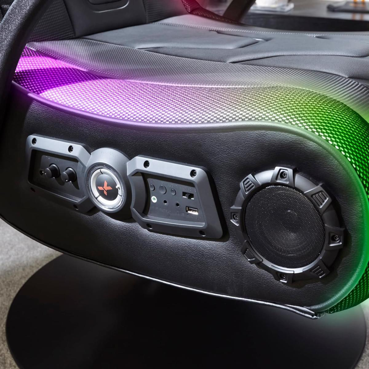 X-Rocker Monsoon RGB 4.1 Audio Pedestal Gaming Chair, 4.1 Surround Sound Light Up Gaming Seat w/ 30 Neo Motion RGB Settings, Bluetooth Wireless Speakers, Subwoofer and Vibration, Padded Armrests Faux